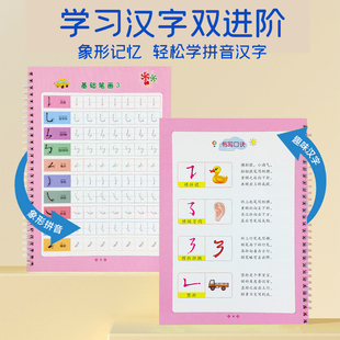 儿童控笔训练字帖反复使用凹槽画册幼儿园入门小学生数学拼音笔画笔顺描红本练字帖幼小衔接每日一练启蒙控笔练字本 送消失笔
