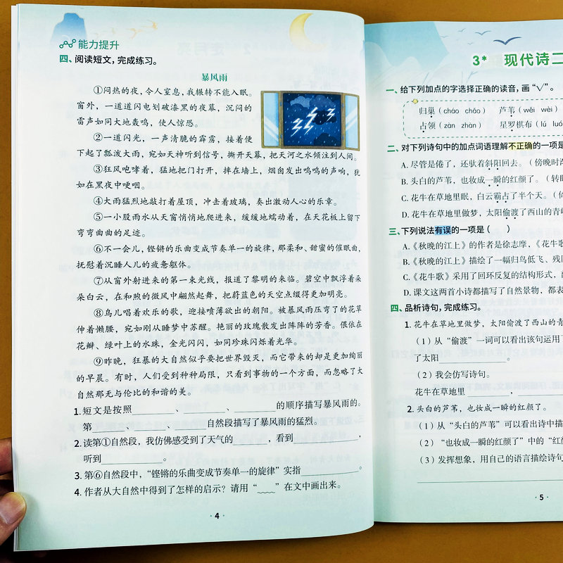 四年级上册语文数学英语同步练习册一课一练人教版 应用题英语听力 4年级上册同步训练课时作业思维能力提升字词句阅读理解口算竖式