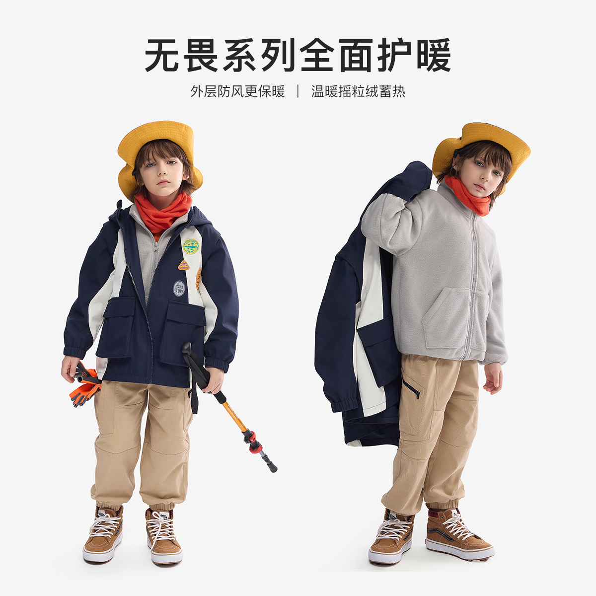 MQD童装 蓄暖三合一 男童外套春秋冬款 款 儿童户外风 冬装 免50