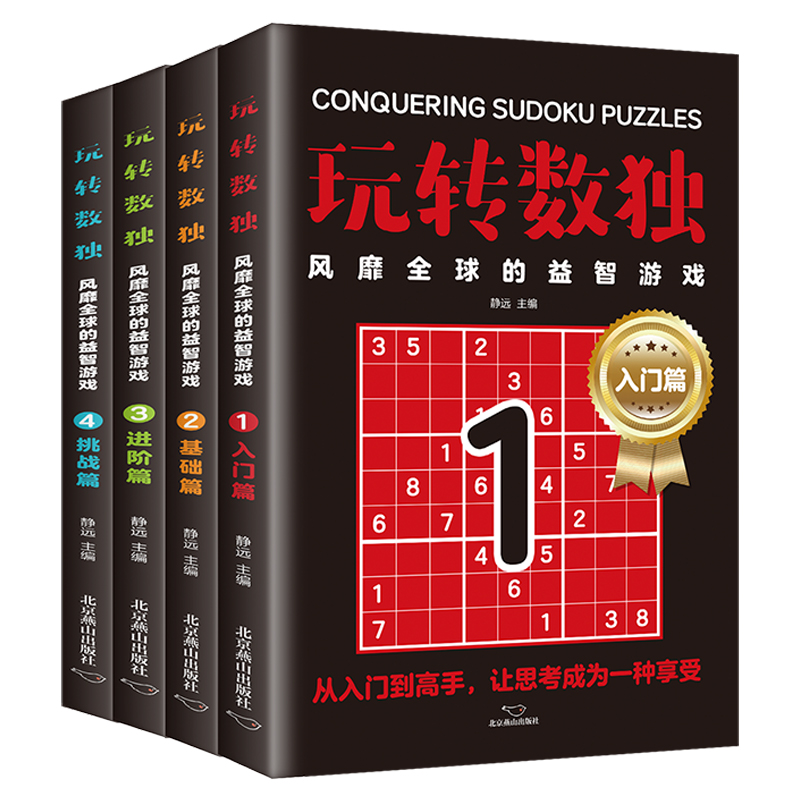 玩转数独全套4册风靡全球 益智游戏书九宫格填字数独益智游戏逻辑思维训练小学生从入门到进阶智力开发专注力训练趣味闯关游戏书