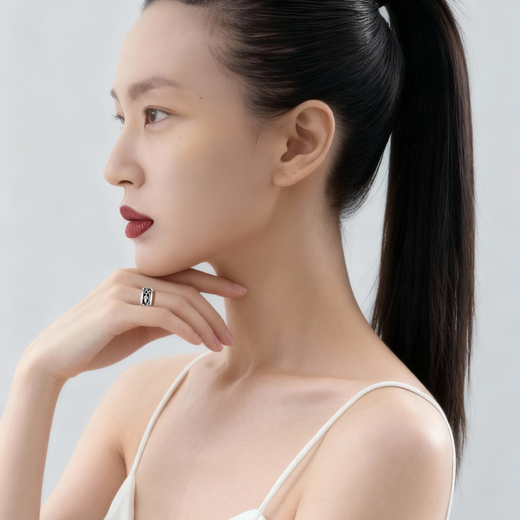 S999足银钱币戒指女招财聚财素圈指环小众设计转运食指纯银国潮风