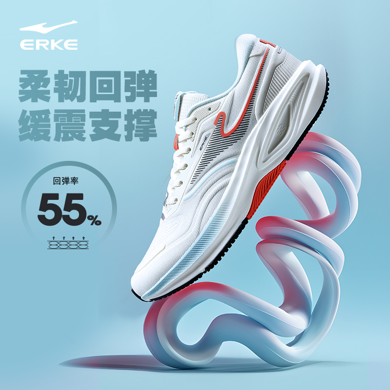 软底黑色运动鞋 防泼水减震回弹跑鞋 男新款 鸿星尔克穿梭3.0跑步鞋