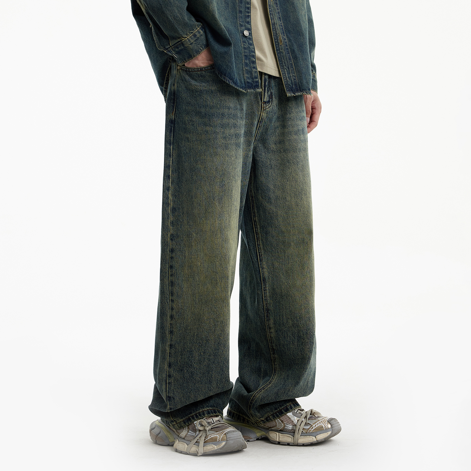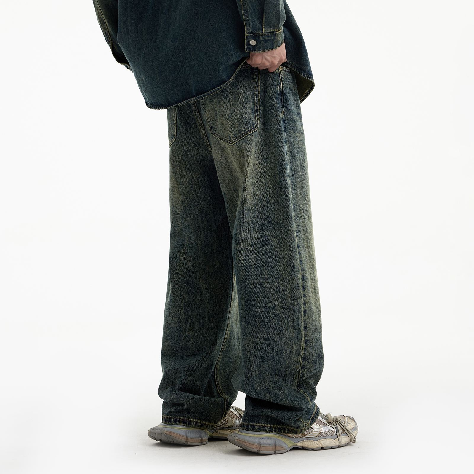复古水洗做旧牛仔裤 潮牌宽松直筒阔腿长裤 男款 2025新款 子 秋季 美式