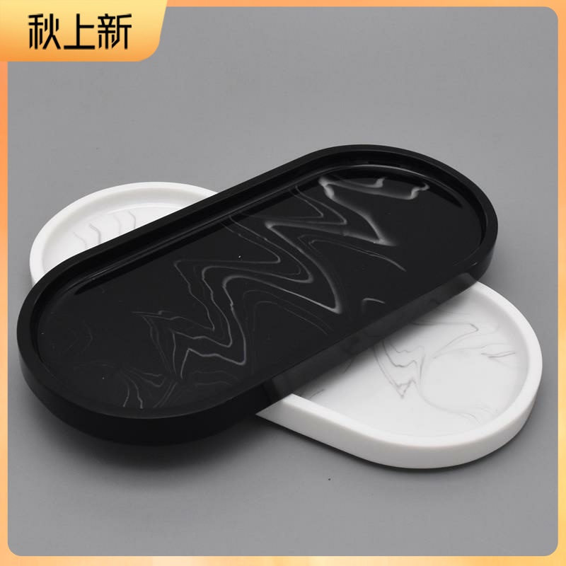轻奢风香雪梅大理石卫浴用品套件浴室收纳托盘家用酒店风装 饰摆件
