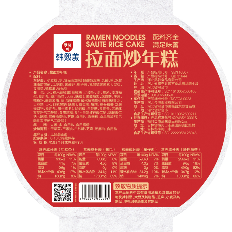 韩熙美拉面炒年糕盘装 甜辣口味速食泡面微波加热小吃