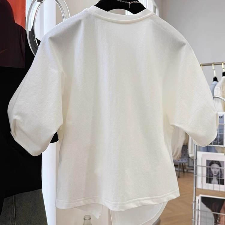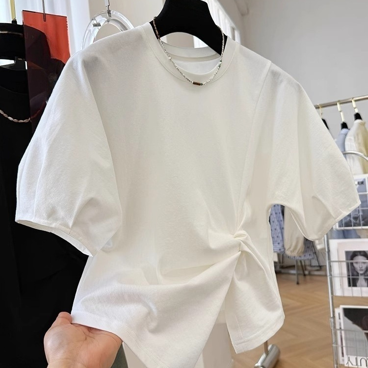 T恤女胖mm设计感扭结开叉修身 圆领灯笼短袖 显瘦上衣 新款 2025夏季