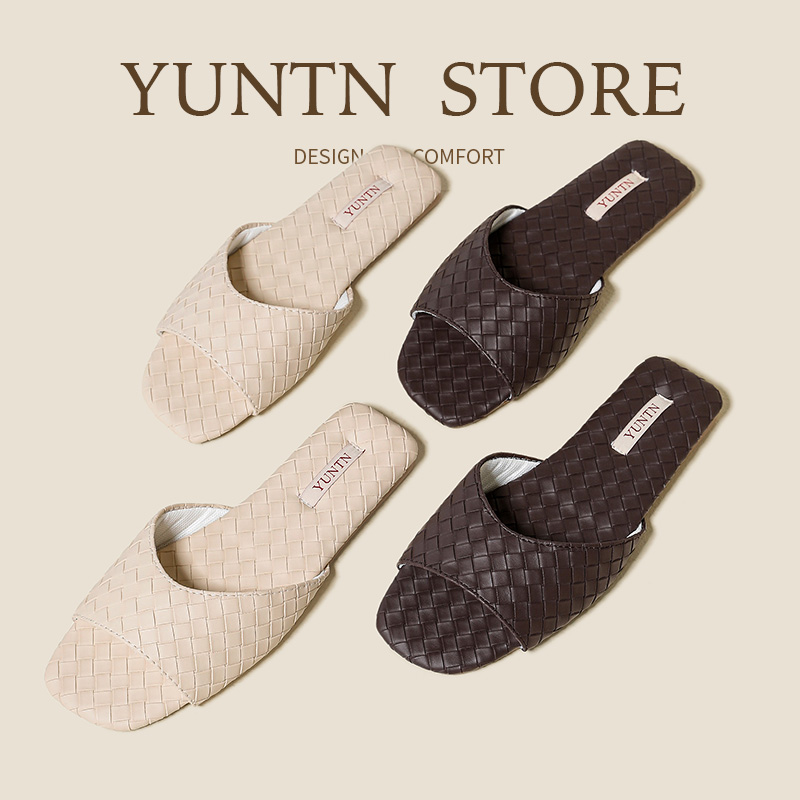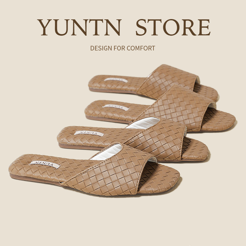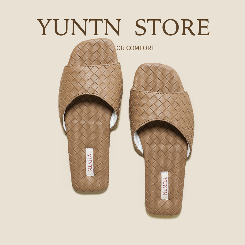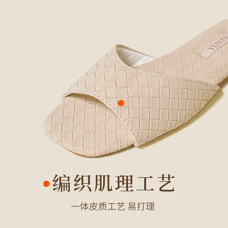 夏季 女情侣开口室内轻便防滑牛筋底男 高级感气质编织纹pu皮凉拖鞋