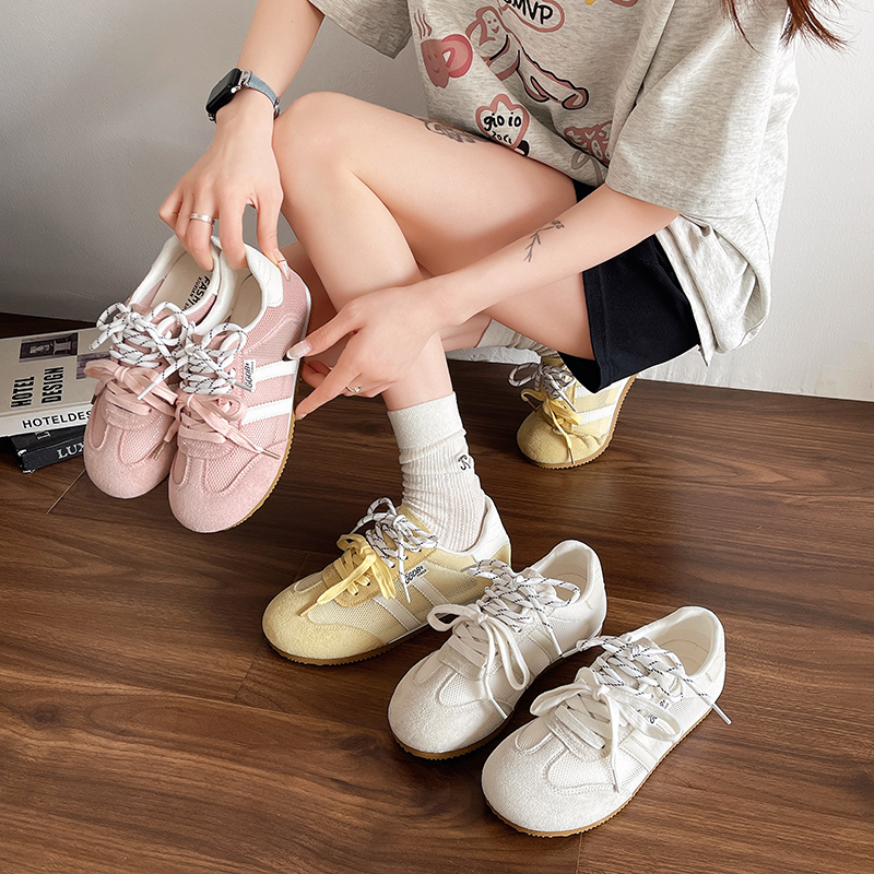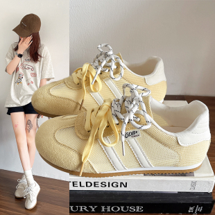 女2025新款 子运动休闲板鞋 秋季 百搭阿甘鞋 爆款 拉夏贝尔黄色德训鞋