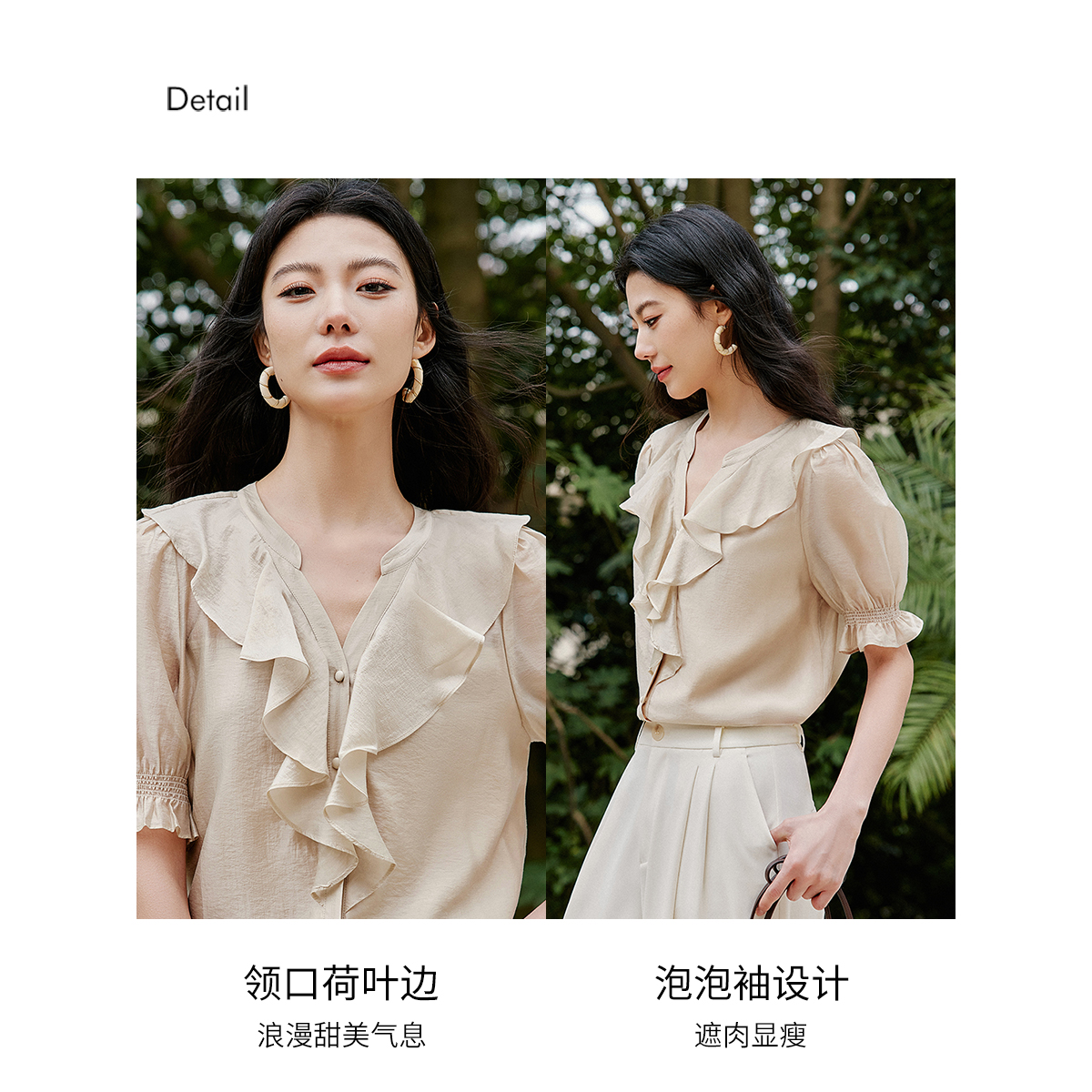 翻领上衣2025秋季 女纯色长袖 Eland衣恋衬衫 新款 100%棉