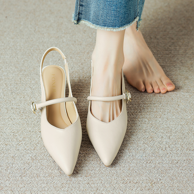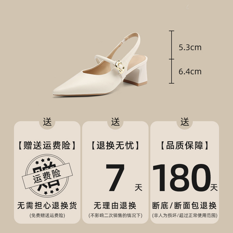 后空凉鞋 包头玛丽珍鞋 女2025新款 配裙子粗跟高跟尖头时装 夏季 法式