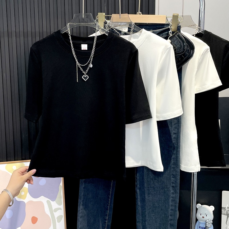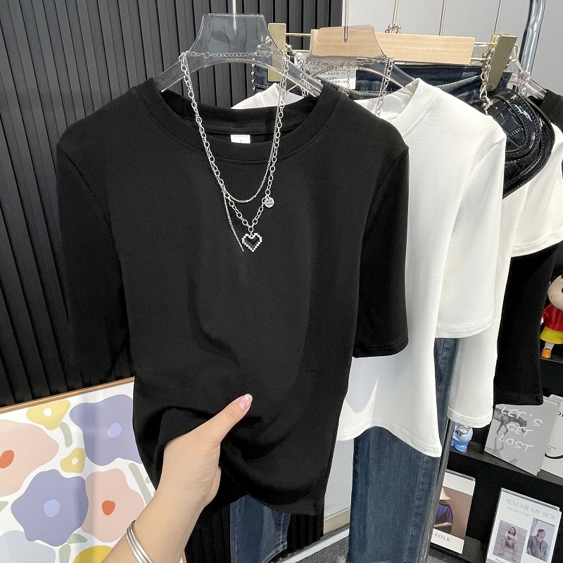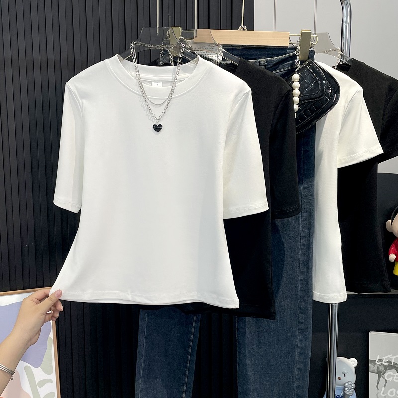 中袖 Fjwldy白色圆领半袖 正肩T恤女轻职风早春好看甜辣独特大码