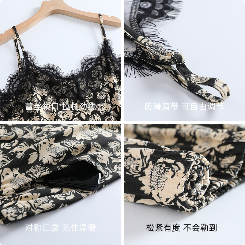 夏天性感蕾丝可外穿夏款 薄款 家居服 纯棉吊带背心短裤 睡衣女士夏季
