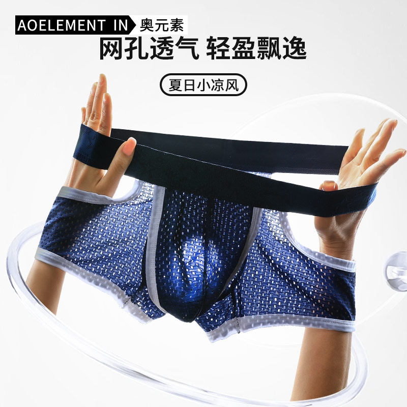 冰丝枪弹式 男生运动平角短裤 分离内裤 薄款 头 四角透气网眼夏季 男士