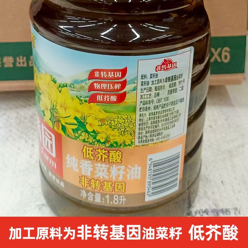 香满园黄金珍鲜纯香菜籽油1.8L桶装 家庭团购炒菜食用油