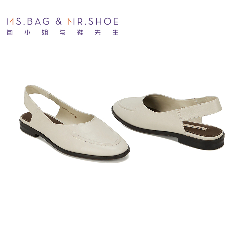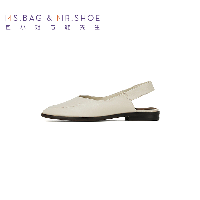 米白植鞣羊皮平底后空凉鞋 新品 女252448 先生2025年夏季 包小姐与鞋