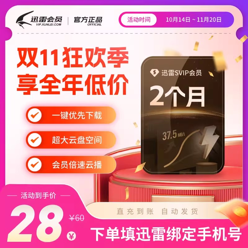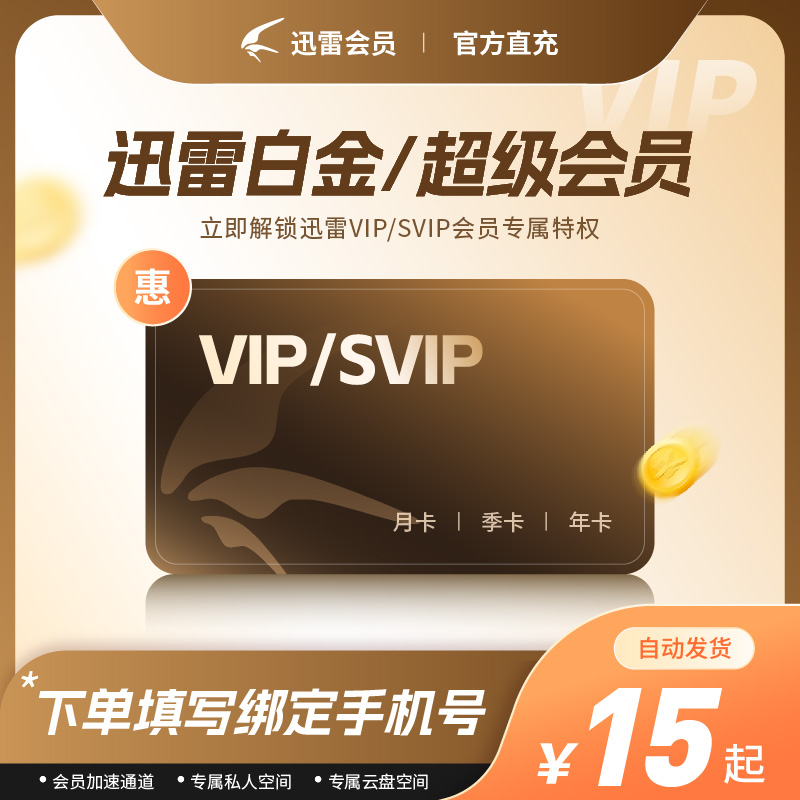 迅雷超级会员月卡迅雷SVIP12个月加速10T云盘90天 天 0.3元
