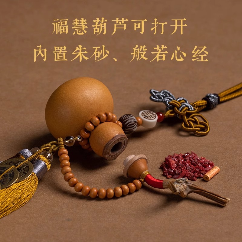 2025新款 车挂饰车载平安天然葫芦五帝钱汽车流苏挂件高档后视镜