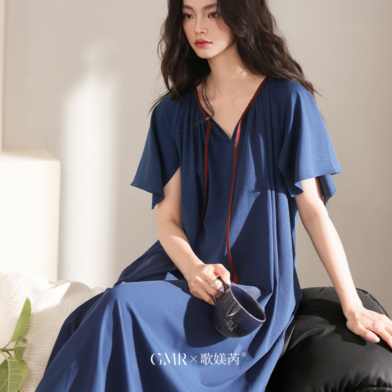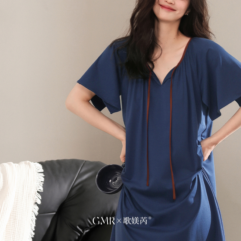 女士大码 夏季 宽松睡衣显白连衣裙子 中长裙纯棉薄款 2025睡裙女短袖