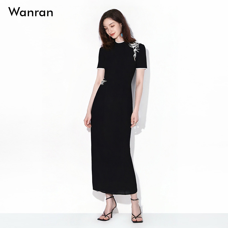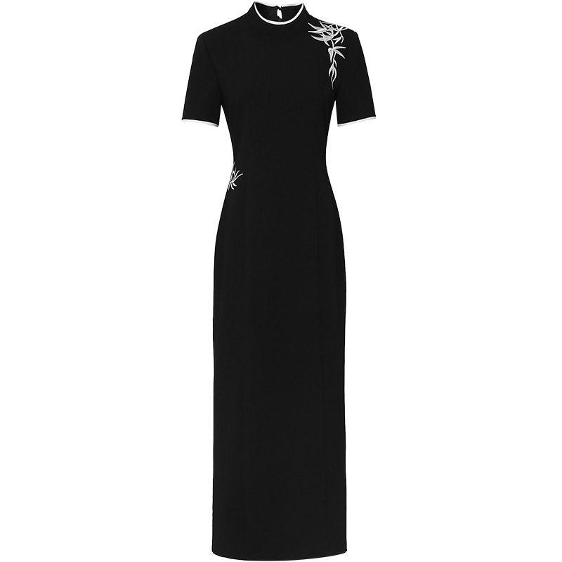 中长款 复古小香风长袖 法式 新款 开衩收腰显瘦小黑裙 连衣裙2025秋季