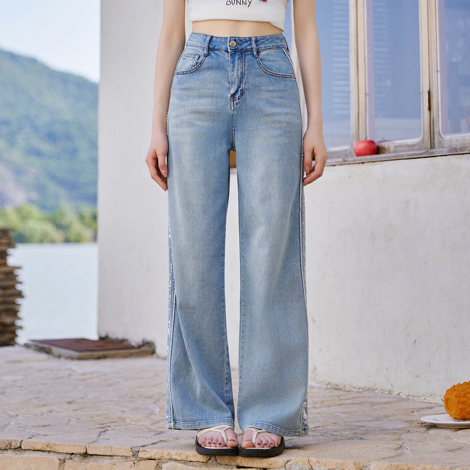 宽松显瘦阔腿直筒裤 莱赛尔天丝牛仔裤 冰丝高腰垂感窄版 薄款 女夏季