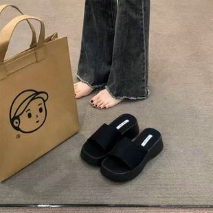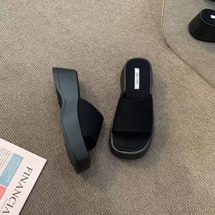 松糕厚底一字拖鞋 高跟露趾凉拖鞋 外穿女鞋 新款 2025年夏季 踩屎感