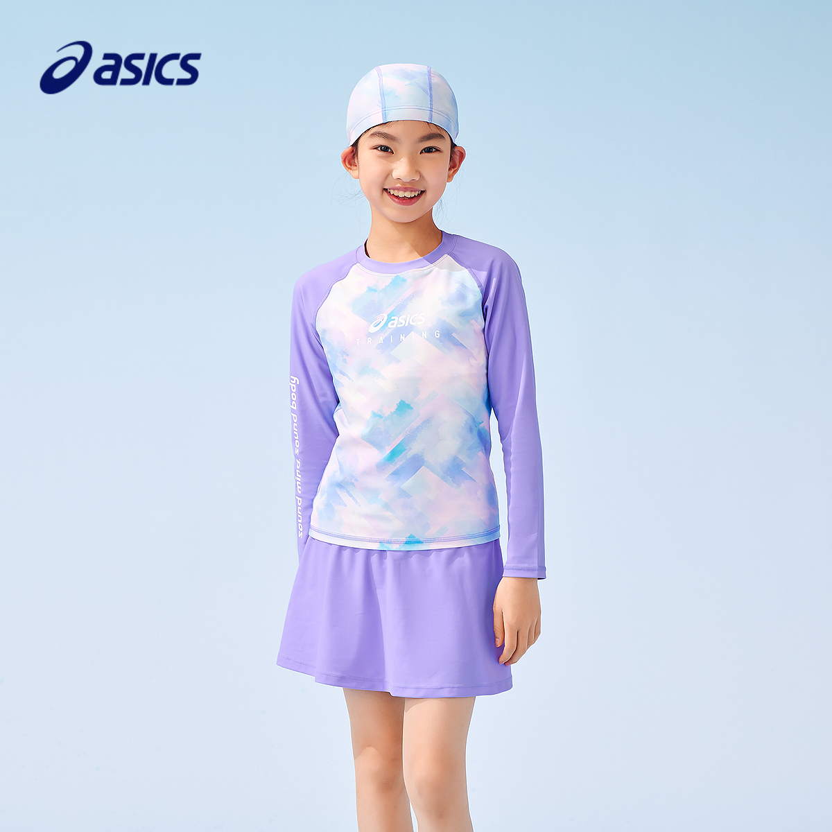 泳帽分体套装 ASICS 弹力抗菌泳衣泳裤 UPF50 亚瑟士儿童男女童夏季