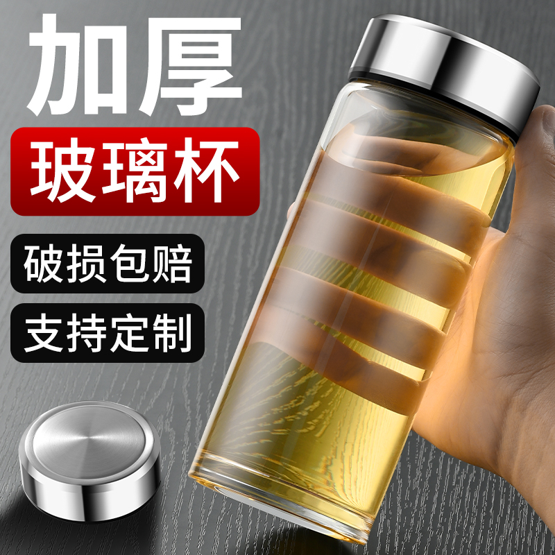 玻璃杯单层加厚家用喝水茶杯男士 耐热透明水杯女办公杯子定制logo