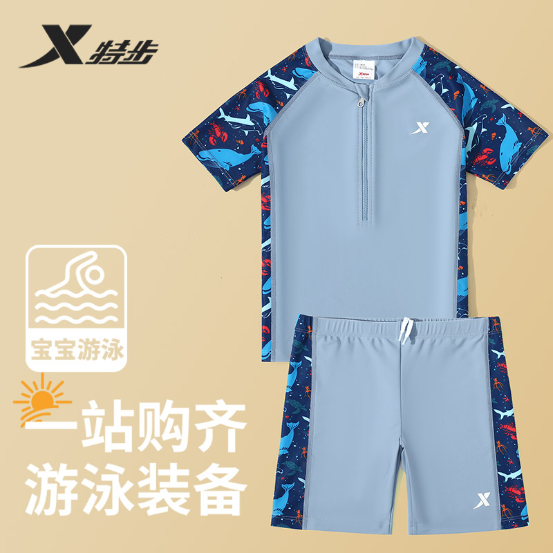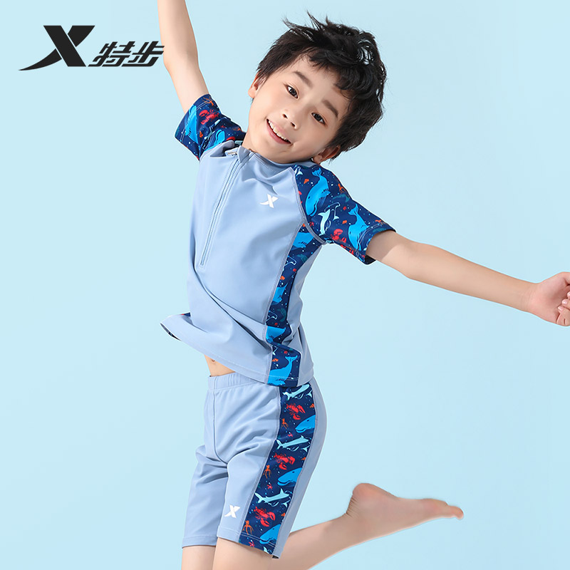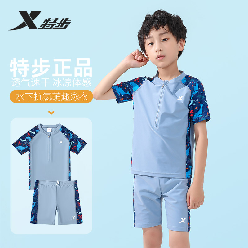 特步儿童泳衣男童2025新款 分体平角防晒速干中大童专业游泳衣男孩