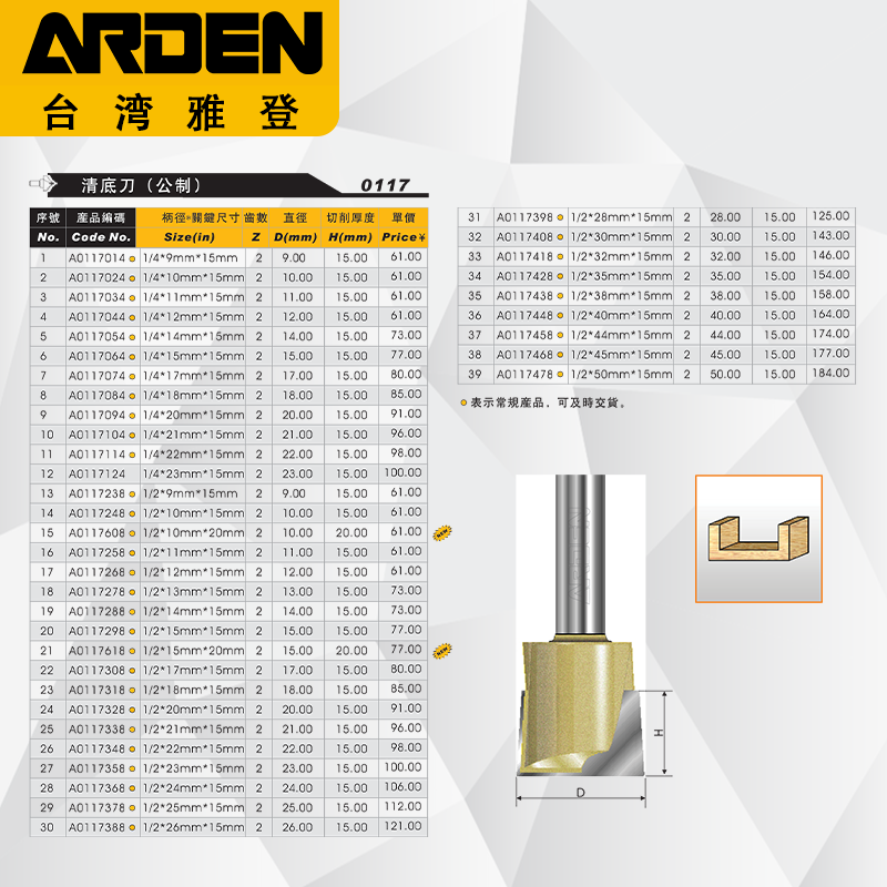 雅登公制清底刀开槽平底铣底刀木工修边机刀头电木铣雕刻机锣刀