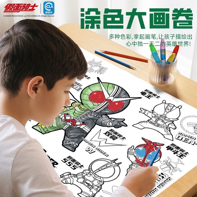 6岁儿童小学生一年级课外涂色大画卷jt 布莱泽涂色绘画本儿童涂鸦画画本一二年级美术涂色画本不脏手3 假面骑士正义集结 初音未来