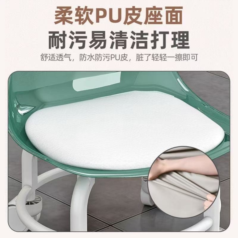 2024亚克力短靠背小椅子家居带娃滑轮矮凳透明椅子带万向轮儿童凳