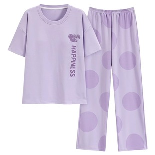 可外穿睡衣女士夏季 自带休闲胸垫家居服套装 短袖 2025新款 长裤 薄款