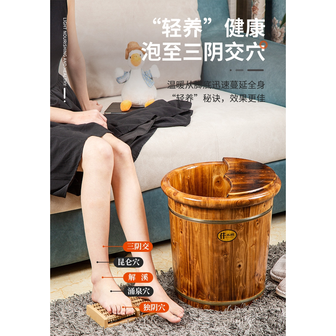 仟木悦香柏木泡脚桶家用洗脚盆实木带盖子加厚木盆足浴桶盆高深桶