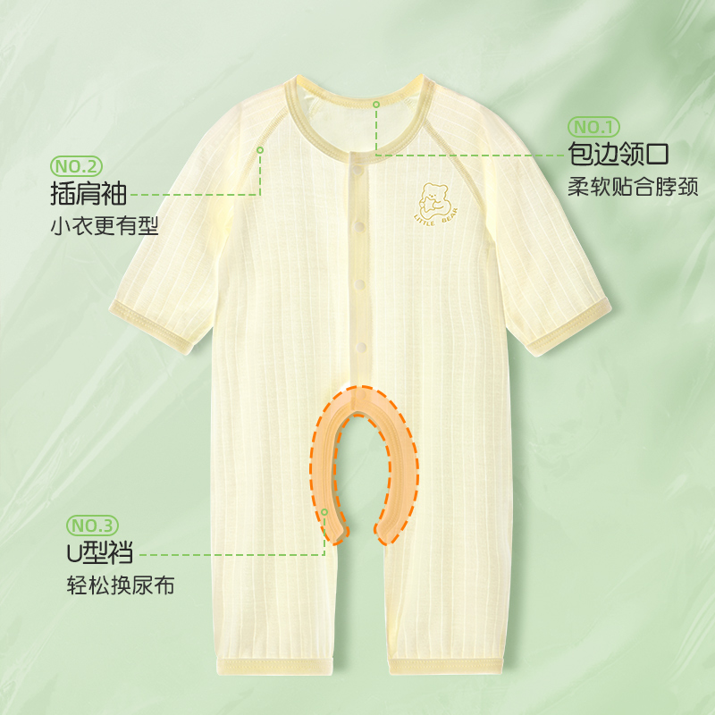 开裆空调宝宝夏装 薄款 新生儿衣服幼儿长袖 拉夏贝尔婴儿连体衣夏季