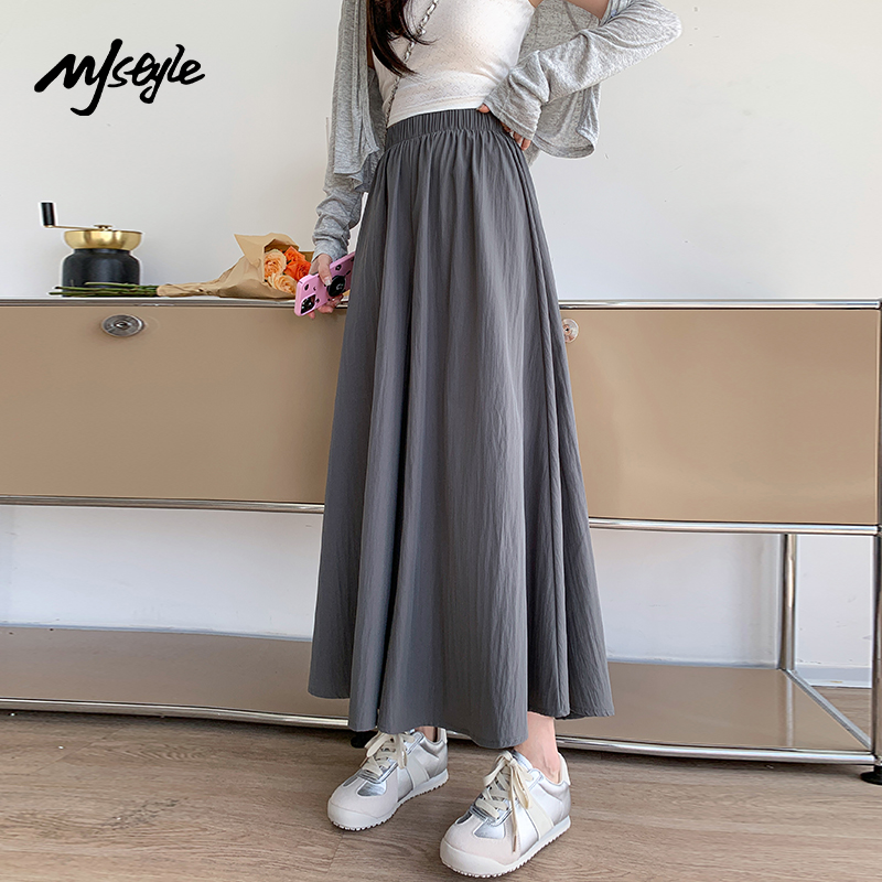 设计感裙子摩安珂 附腰带 MOCO中高腰长款 压褶宽松A字半身裙伞裙