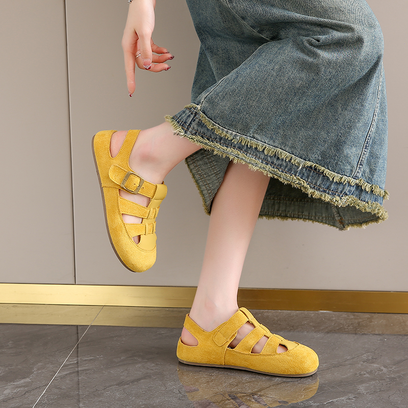 女夏季 一脚蹬猪笼鞋 包头罗马凉鞋 丑萌洞洞鞋 子 2025新款 超火勃肯鞋