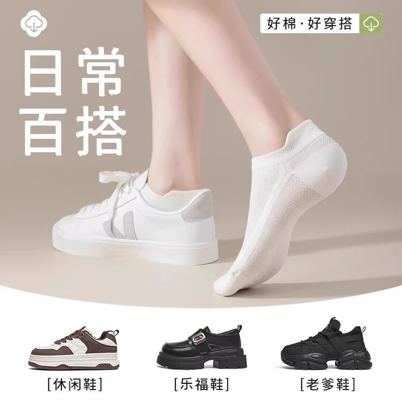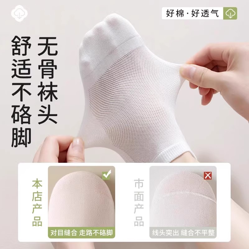 袜子女士短袜夏季 凉感透气不掉跟船袜无骨提耳浅口短筒袜 网眼薄款