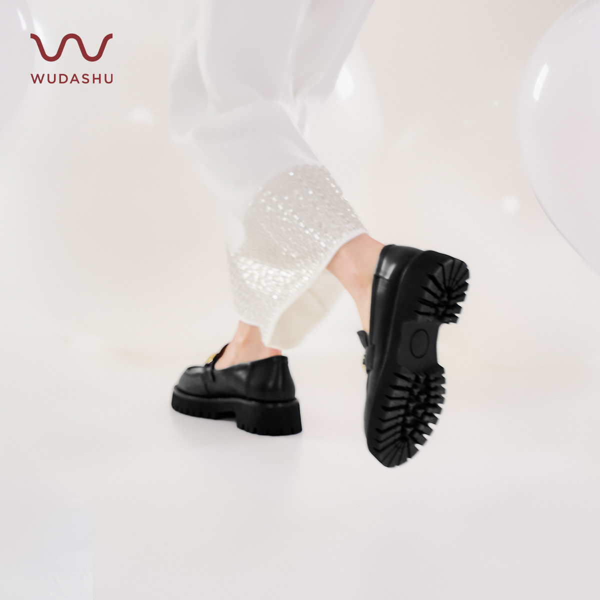 休闲圆头单鞋 吴大叔2025秋冬超软羊皮乐福鞋 女厚底英伦风黑色皮鞋