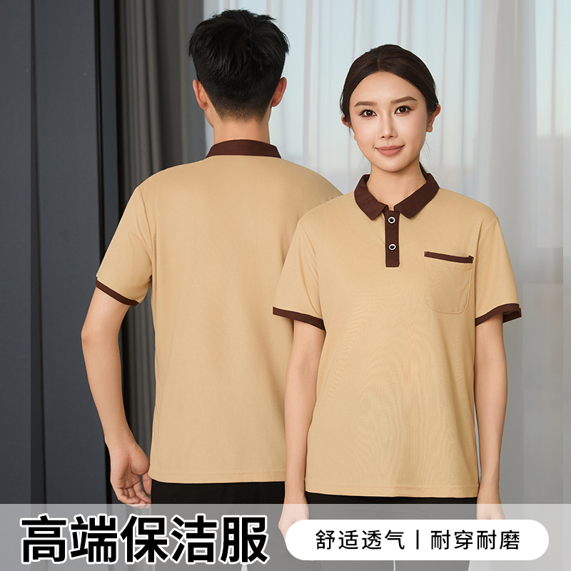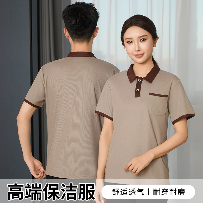 酒店客房保洁员工作服T恤半夏男女定制印绣餐饮工装 小区物业楼层