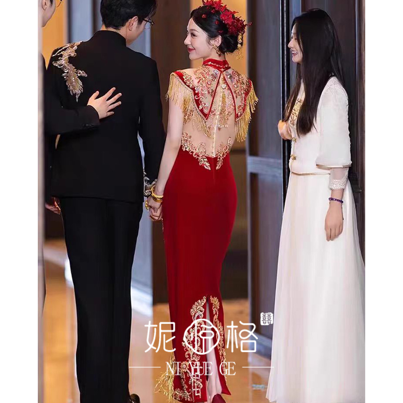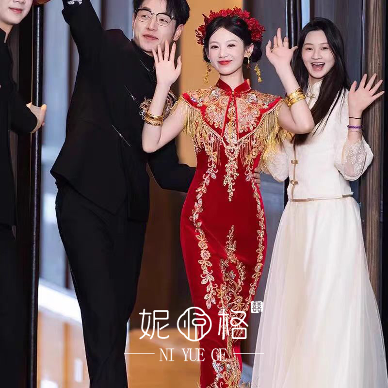 国风订婚敬酒礼服裙子 新中式 红色改良旗袍连衣裙女2025年秋季 新款