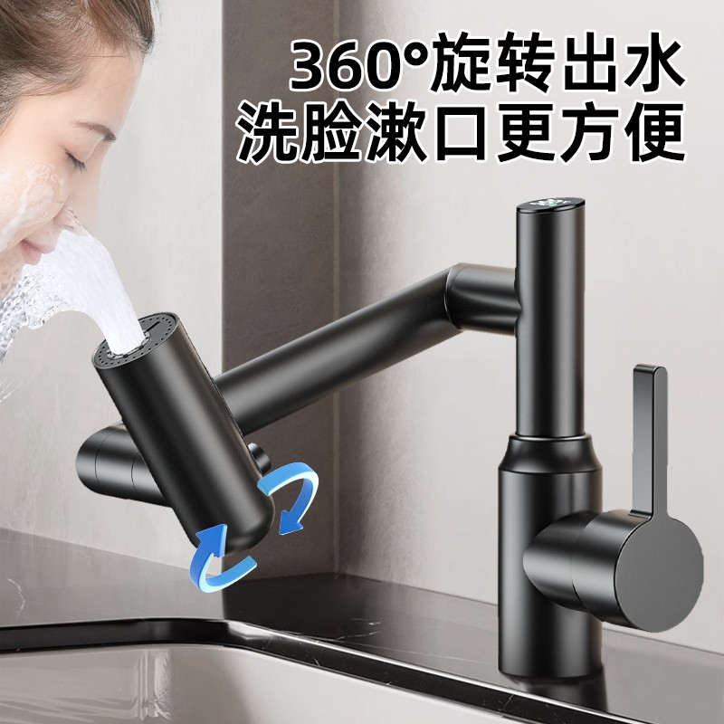 304不锈钢冷热水龙头脸盆卫生间械臂360度旋转万向数显安装 出水