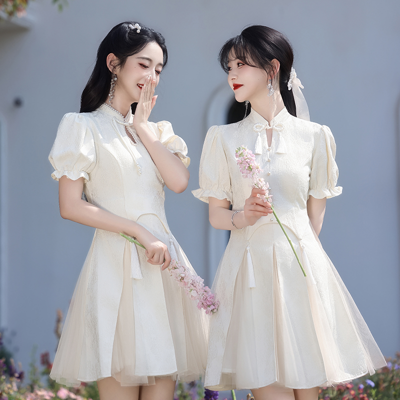 夏季 新中式 连衣裙2025新款 改良旗袍短袖 高级感伴娘服裙子 国风女装