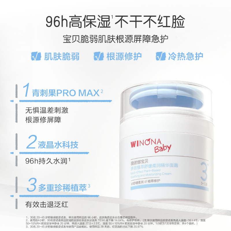 薇诺娜宝贝暖绒绒精华霜50g宝宝儿童秋冬3 补水舒缓霜小冰吨 保湿