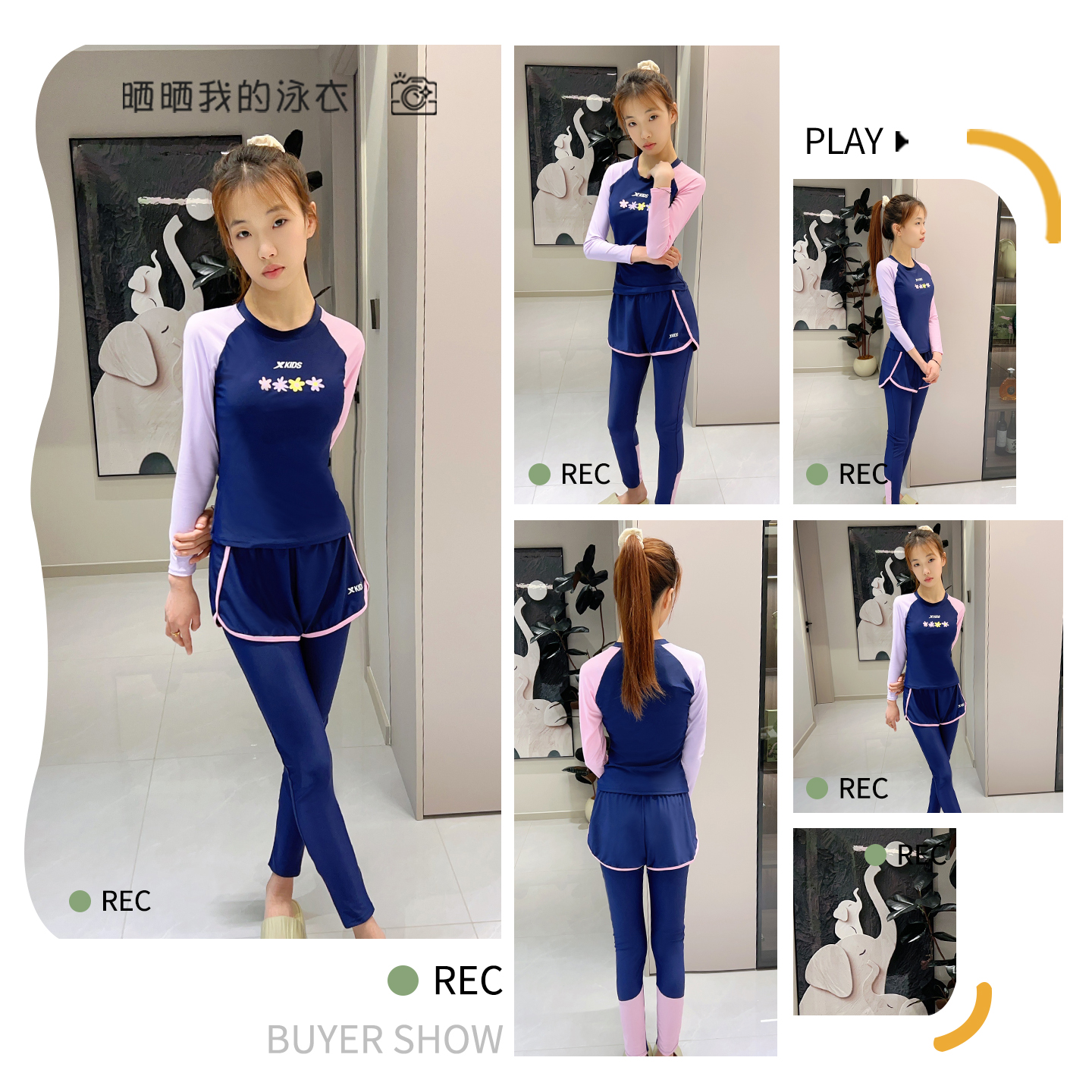 保守分体女童中大童冲浪训练潜水服 儿童泳衣2025新款 特步长袖 长裤