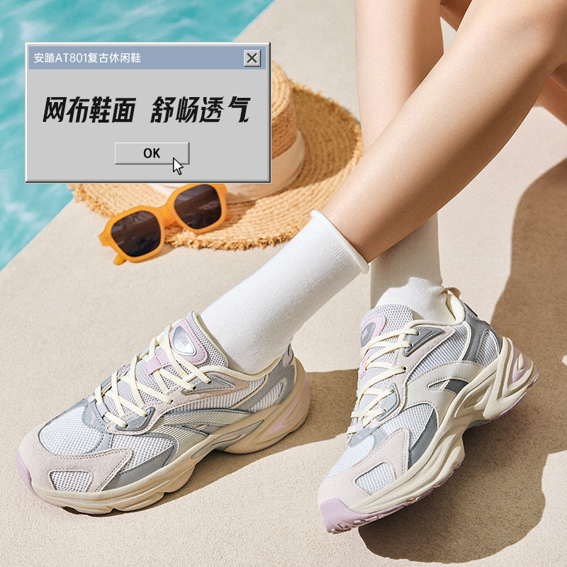 网面透气官方旗舰运动鞋 王一博同款 2025秋季 女鞋 安踏AT801休闲鞋