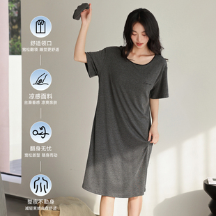 高级感棉绸睡衣裙中长款 短袖 莫代尔家居服 夏季 猫人带胸垫睡裙女款
