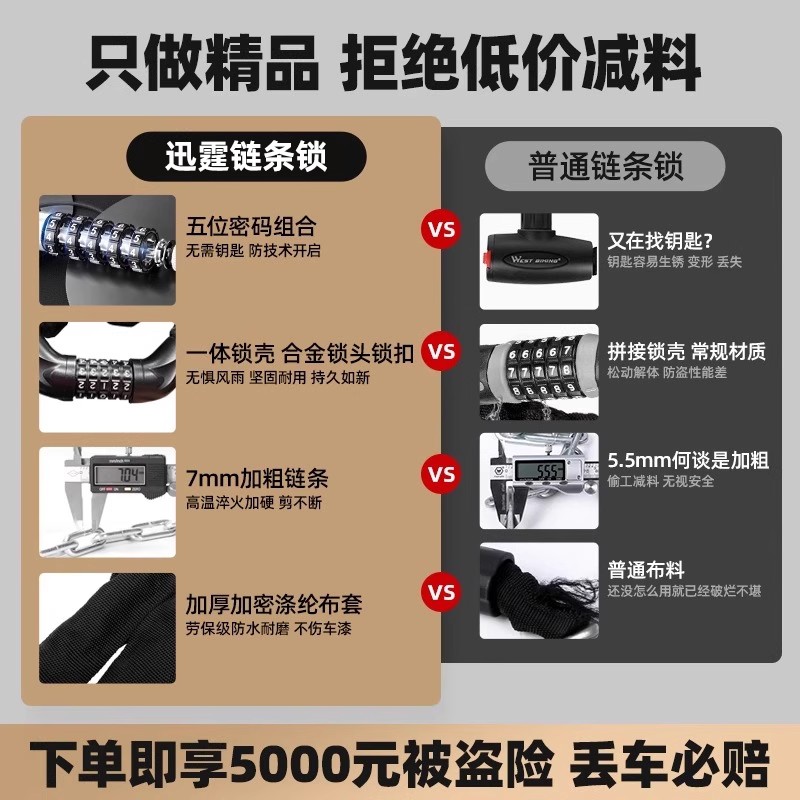 新型自行车锁防盗锁密码 单车配件 链条锁电动电瓶车锁摩托车便携式