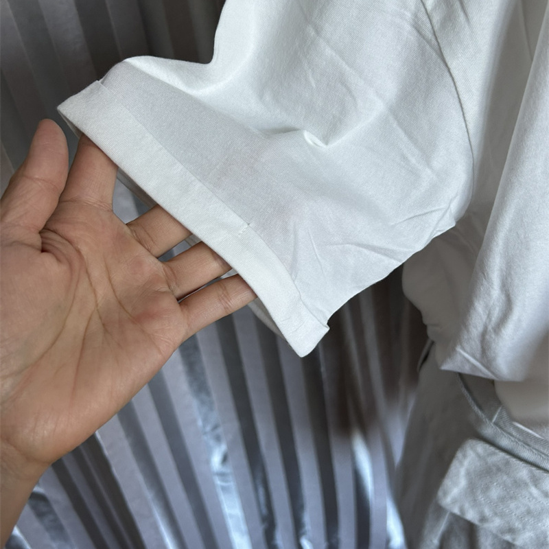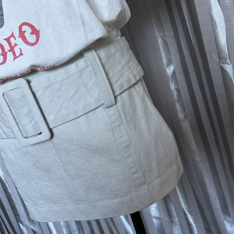 灰色半身裙 T恤 明星网红花三三同款 牛头英文印花白色卷边短袖