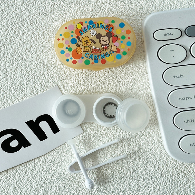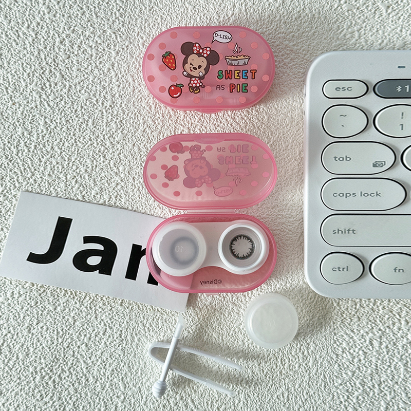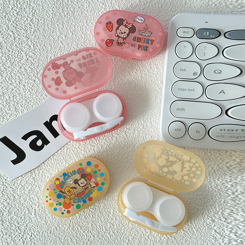 迪士尼隐形眼镜盒便携可爱美瞳盒子伴侣盒带小夹子吸棒护理收纳盒