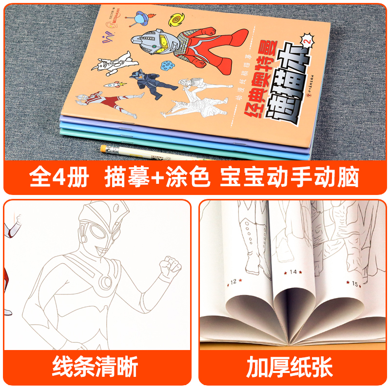 儿童奥特曼涂色本画画本男孩子超喜欢 6岁控笔训练动漫动脑能力 涂色书益智玩具书游戏书幼儿园小班大班美术涂鸦绘画描印填色本3